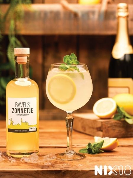 Vul een mooi glas met ijs. Schenk de Bavels Zonnetje Limoncello, prosecco en het bruiswater in het glas en roer zachtjes door. Garneer met een schijfje citroen en blaadjes munt.